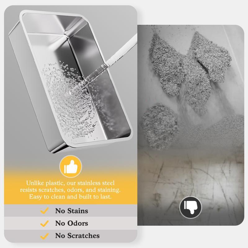 Product Title: Stainless Steel Cat Litter Box Large Size** **Introduction**: Introducing our premium Stainless Steel Cat Litter Box Large Size, the ultimate solution for your feline friend's hygiene needs! **Key Features**: **Durable & Rust-Resistant**: Made from high-quality stainless steel, this litter box is built to last. Its rust-resistant properties ensure it stays in top condition, even with daily use. **Spacious Design**: The large size offers ample room for your cat to move around comfortably, making litter box time stress-free. **Easy to Clean**: Stainless steel is incredibly easy to clean and disinfect, keeping your home free from unwanted odors and bacteria. **Why Choose Us**: Say goodbye to flimsy, plastic litter boxes that scratch and stain easily. Our Stainless Steel Cat Litter Box Large Size combines durability, style, and functionality in one sleek package. It's perfect for multi-cat households or for cats who prefer a bit more elbow room. **Conclusion**: Upgrade your cat's litter experience today with our Stainless Steel Cat Litter Box Large Size. Your cat will thank you for the comfort and you'll appreciate the ease of maintenance!